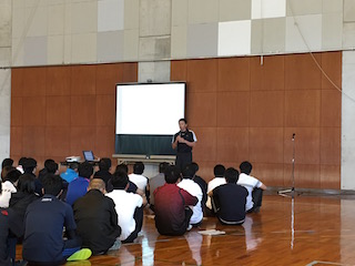 この日の対象者は、草津東高等学校体育科に所属する1年生および2年生総勢80名で、2学年合同で行いました。