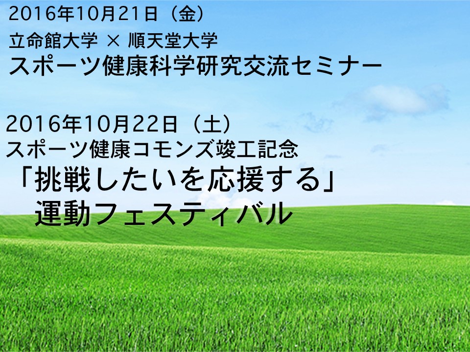 まず10月21日(金)は,立命館大学と順天堂大学による「スポーツ健康科学研究交流セミナー」です.最先端のスポーツ健康科学について研究の話を聴くことができます.