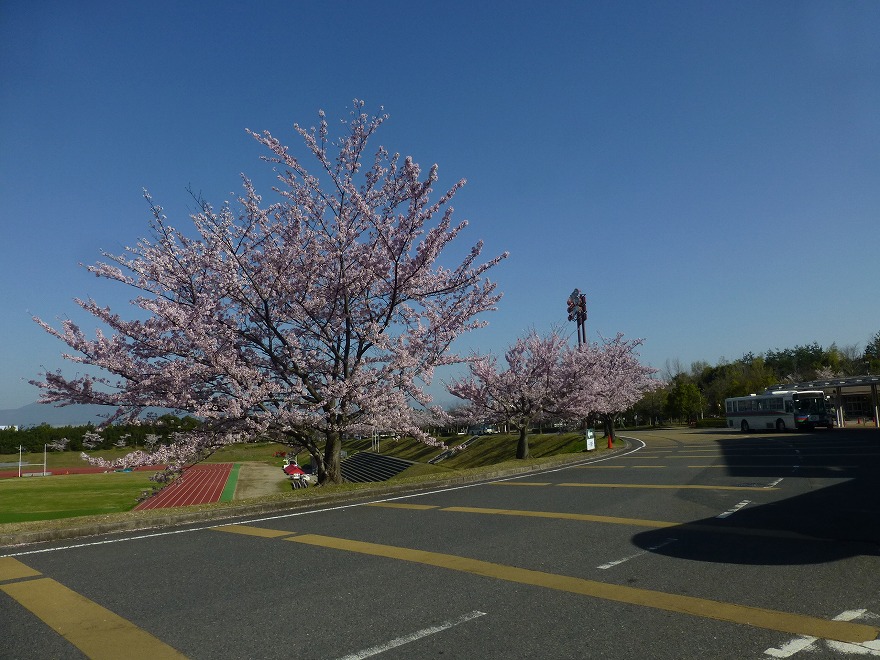 ここ数日BKCの正門横、クインススタジアムの周囲に見事な桜並木を見せてくれています。