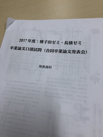 そして、今日は卒業論文の口頭試問がありました。”4年間の学びの集大成”と力作を誇らしげに発表する学生。”もっと頑張っておけば良かった”と反省の思いが滲んだ内容の学生。それぞれの思いは異なっても、限られた時間の中でまとめ上げた集中力と気力でもって取り組んだ過程で得たものの大きさは、これからの人生に大いに役立つものと思います。ゼミ生の多くは日頃のクラブ経験で感じた身近な心理的な問題意識を基に取り組みました。以下はO君の感想です。