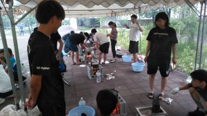 参加者は、野外での調理の大変さを汗だくになりながら学んだようです。