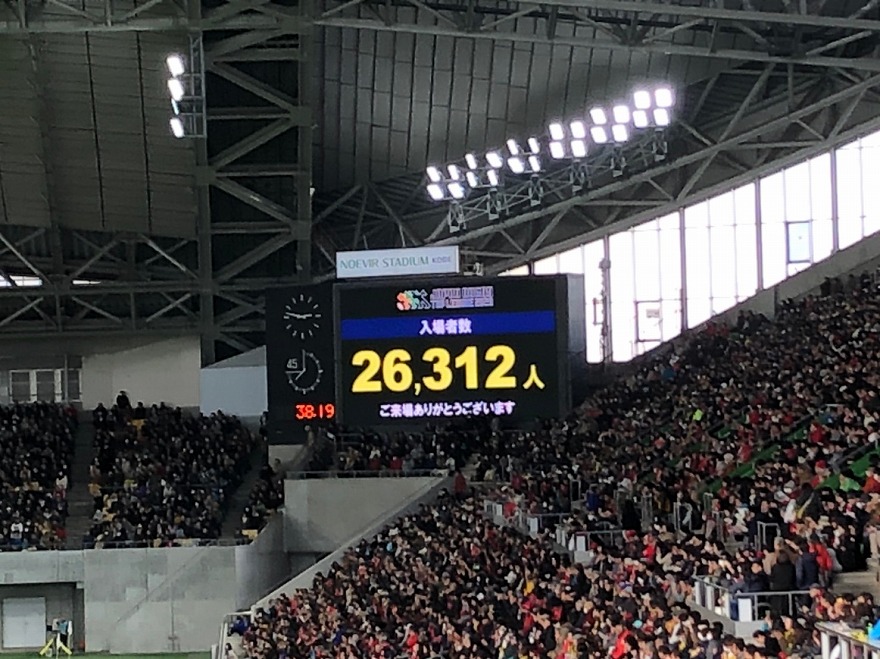ノエビアスタジアム神戸で開催された試合も超満員になりました。
