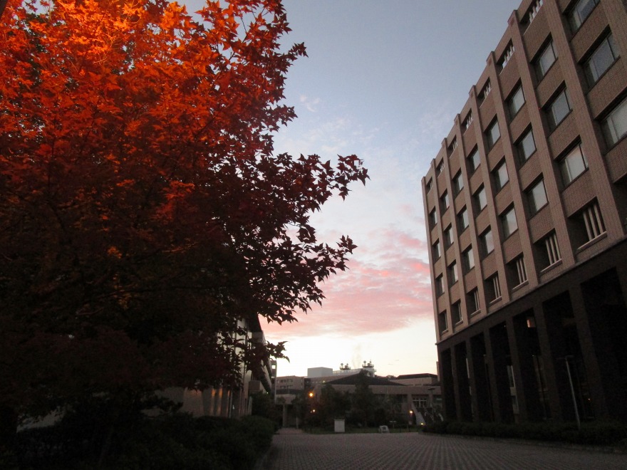 フロンティアアベニューの街灯の立命館大学のRのコミュニケーションマークが、見慣れないフラッグにすべて掛け変わっていました。よくわかりませんが、おそらくキャンパス内全面禁煙のキャンペーンでしょうか。心筋梗塞などの血管へのリスクをそれとなくアピールしている秀逸なデザインです。