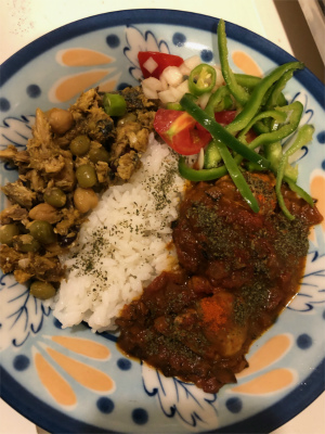 僕自身は相変わらず走っていて、12月に奈良マラソンに出ることになりました。うちの実家の真前を通るので僕の両親も応援してくれるそうです。あと最近またスパイスカレーを作ってそれに添えるアチャール(インド風漬物)も作りました。今日の写真はチキンカレーと鯖と豆のカレーのあいがけにピーマンのアチャールとトマトと玉ねぎと青唐辛子のアチャールです。全て混ぜて食べると美味しかったです。奥さん曰く「職を変えたらカレー屋をすれば?」ということでした。(笑)