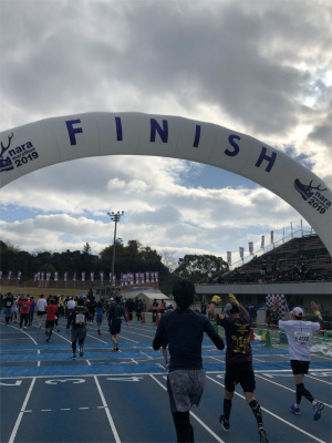 コースのしんどさを除けばとても楽しいマラソンでした。沿道の人たちもすごく応援してくれるし、折り返し地点ではぜんざい(お汁粉?)も食べることができます。僕は食べませんでしたけど。。。あと、奈良らしく三輪そうめん補給地点の一つで提供されていました。こちらも食べませんでしたが。。。京都マラソンは八ツ橋があるので、この辺は地域性が出ていていいですね。あと実家の前がコースになっているので、家族も応援してくれました。