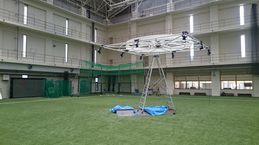 野球のエリアにはモーションキャプチャーシステムが配置されていました。またピッチャーマウンドの下にはフォースプレートが埋設され床反力を測れる様になっています。サッカーコートにはワイヤレスな位置測定システムがあり、複数の選手の動きをリアルタイムにトラッキングできます。当日は現地にはありませんでしたが、テニスボールの位置や回転を常時計測するシステムも使っている、との事でした。