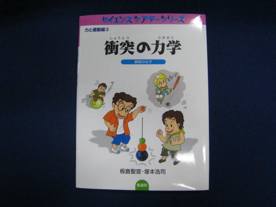 他にどんな事に気を付けておけば良いのかな?と思い、衝突現象を専門に扱った書籍が無いか調べて見ましたが、ごく限られた数しか出版されていない様です。写真の書籍はその中の一冊です。中学生~高校生向けのものですが、目を通しておこうと思い購入しました。読んでみると衝突現象を考える時のキーポイントが解りやすい言葉でまとめられており、期待していた以上にためになりました。とはいえ研究に活用するためには全ての記載内容を数式で表現できていなくてはなりませんので、言葉で説明されている事柄を全て数式に書き換える、という作業を2~3日掛けて行いました。結果として衝突現象について原理・原則を整理することが出来、良い勉強になりました。