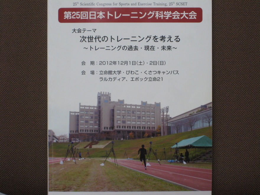 鹿屋体育大学です。毎年この時期に開催される大会で、2012年には立命館大学びわこ・くさつキャンパスで開催されました(今日の写真はその時のプログラム集の表紙です)。2013年には山形県の蔵王で、2014年にはお台場の産業技術総合研究センターで開催されています。学会の守備範囲が我々の研究内容とぴったりマッチすることのみならず、開催時期や発表資格の観点からも非常に貴重な学会です。例年冬の時期に開催されるため、春頃からコツコツ準備を進めた研究を発表するのに丁度良いタイミングです。また会員になれば学部生も発表することが可能です。今回は当研究室からは4件応募させて頂きましたが、その内2名は他大学・他学部を卒業して4月に入学してきた大学院生、1名は3回生でした。この時期に毎年定期開催してくださる事は大変有難く思います。感謝の意も込めて毎年定期参戦しようと思います。