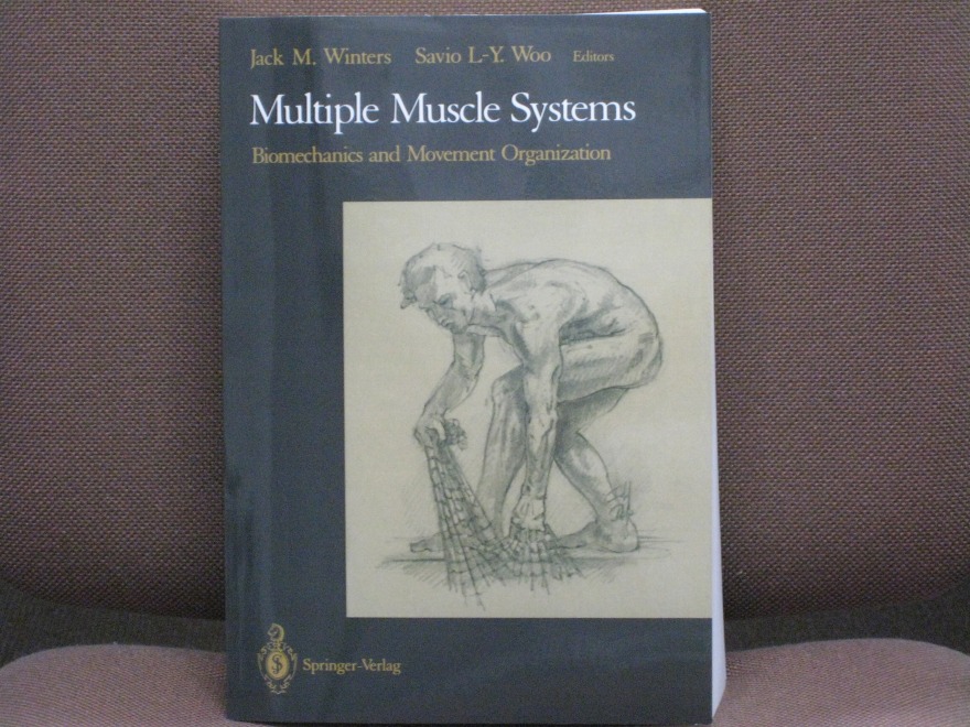 Multiple Muscle Systems" です。この本は当初 1990 年に出版されました。執筆陣には当時の第一線の研究者が名を連ねています。ほぼ全員がビッグネーム揃いの蒼々たるメンバーですが、一部の名前を抜き出しても、Alexander、Bobbert、 Crisco、 Ettema、 Feldman、Flash、Hasan、Hatze、Hinrichs、Huijing、van Ingen Schenau、Latash、Levine、Loeb、McMahon、Morgan、Mungiole、Pandy、van Soest、Winter、Yamaguchi、Zahalak、Zajac、といった名前が並びます。それぞれの分野を切り拓いて構築して来られた方々です。そしてその多くが今も現役で精力的に仕事を続けられています。