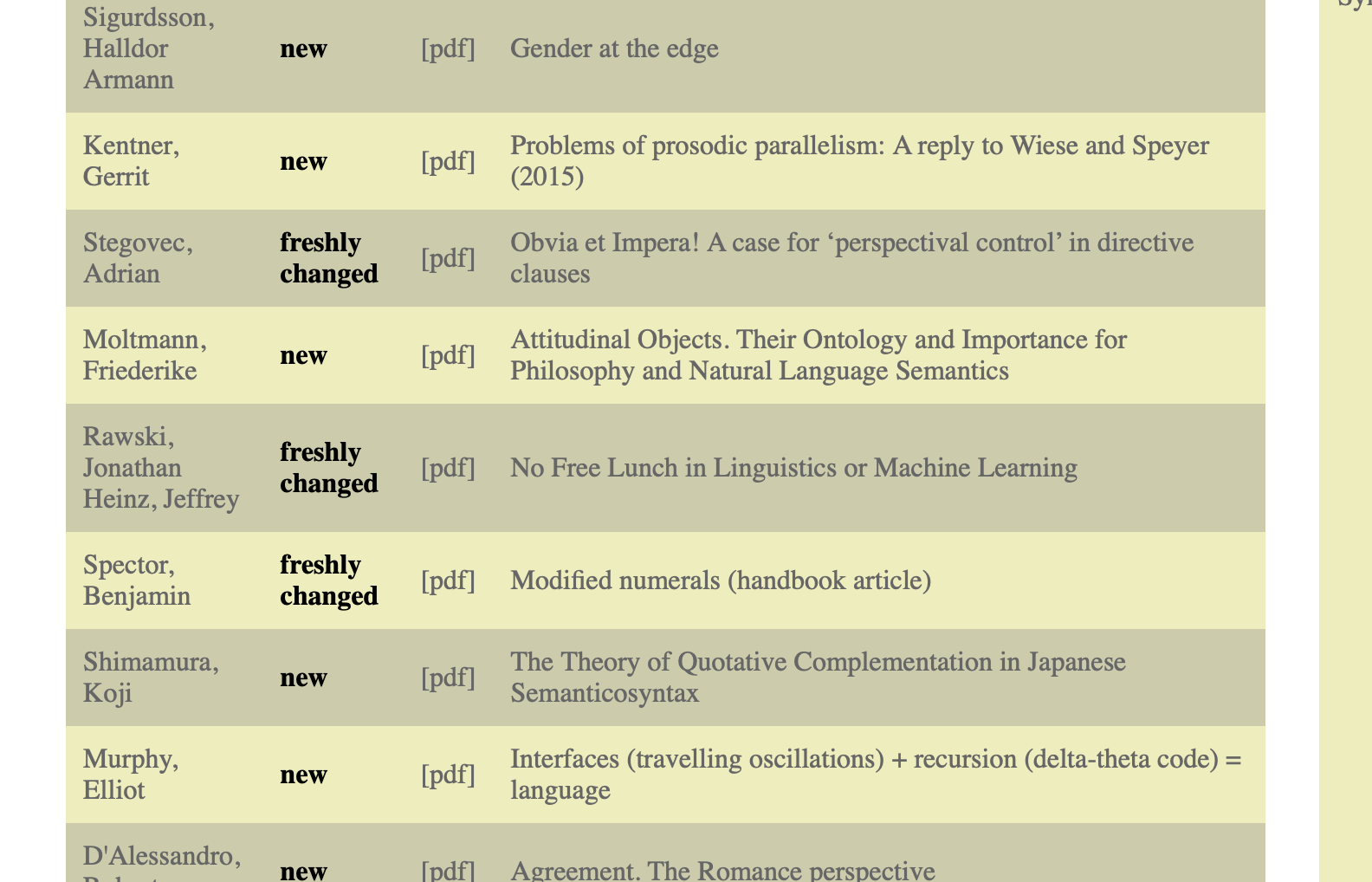 といきたいところですが、まあこれも仕事なので頑張って書きます。しかし数人はいるであろうこのブログの読者のみなさんとシェアするべき話題は特にないので、今日は少し言語学のことを書きます。だからと言ってあんまりテクニカルな話をしても仕方ないので日々我々がどのように研究成果を発信しているかを書きたいと思います。大学の先生がいったいどういう生活をしているかの一部を知ってもらうことになるではないでしょうか。