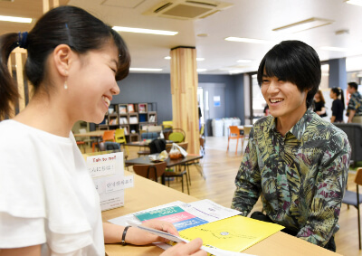 立命館大学には約450のサークル・クラブ活動があり、約7割の学生が課外活動に参加しています。クラブ活動や外国語学習、国際交流が可能なCo-Learning Space*で行われる様々なイベントを通じて日本人学生と交流する機会があります。又、図書館や、ジム等大学内にあるすべての施設も利用可能です。サークル・クラブ活動、多様なイベントにもぜひ参加して日本での学生生活を楽しんでください。