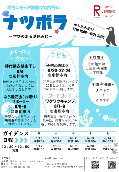 Events & News【参加者募集】ボランティア体験プログラム(衣笠)「ナツボラ」