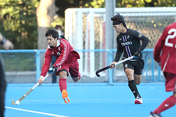 決勝戦は、昨年に続き天理大学との対戦。第1Qに米崎奏太選手(総合心理学部1回生)が見事なFGで先制をすると、リードしたまま前半を終えます。後半に入り第3Qに同点に追いつかれると、そのまま互いに拮抗した状態が続き、1-1の同点で後半を終え、タイブレークのシュートアウト戦へと突入。シュートアウト戦の結果、惜しくもSO4-2で敗れ、悲願の優勝はならず準優勝となりました。