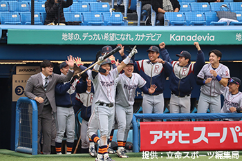 多くの皆さまからの力強いエールのおかげで、立命館は明治神宮大会の決勝戦の舞台で戦うことができました。選手たちは、今季のチームスローガンである「恩返し」の思いを胸に、日頃から支えてくださる皆さまへの感謝を勝利で伝えたいと試合に臨んできました。強豪校を相手に粘り強く戦い抜いた姿は、スローガンを体現したものです。この経験を糧に、硬式野球部は今後もさらなる成長を目指して挑戦を続けてまいります。引き続き温かいご声援をよろしくお願いいたします。