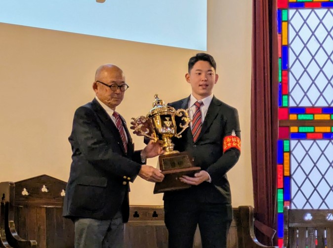 12月7日には、同志社大学今出川キャンパスにて閉会式が開催され、1年間の戦いを締めくくりました。閉会式では、立命館大学体育会本部の笠井深智委員長(法学部4回生)が、「約30年ぶりに復活した総合立同戦を、無事に終えることができたのは、日々競技に向き合ってきた選手・学生はもちろん、指導者の先生方、大学関係者、OB・OGの皆さまなど、多くの方々の支えがあってこそだと感じています。心より感謝申し上げます」と述べました。