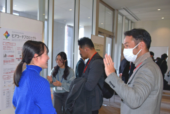 あわせて行われたポスターセッションでは、立命館大学における多様なスポーツ関連の取り組みを紹介。研究と課外活動を結びつけるプロジェクトや、学生が主体となって進める公認活動、応援文化の醸成、さらには産学官連携による取り組みまで、幅広いテーマが並びました。会場では、附属校生・大学生・大学院生に加えて企業関係者も参加し、来場者に直接説明を行いました。活動の背景や成果、そして現在直面している課題についても、率直かつ活発に意見交換がされました。