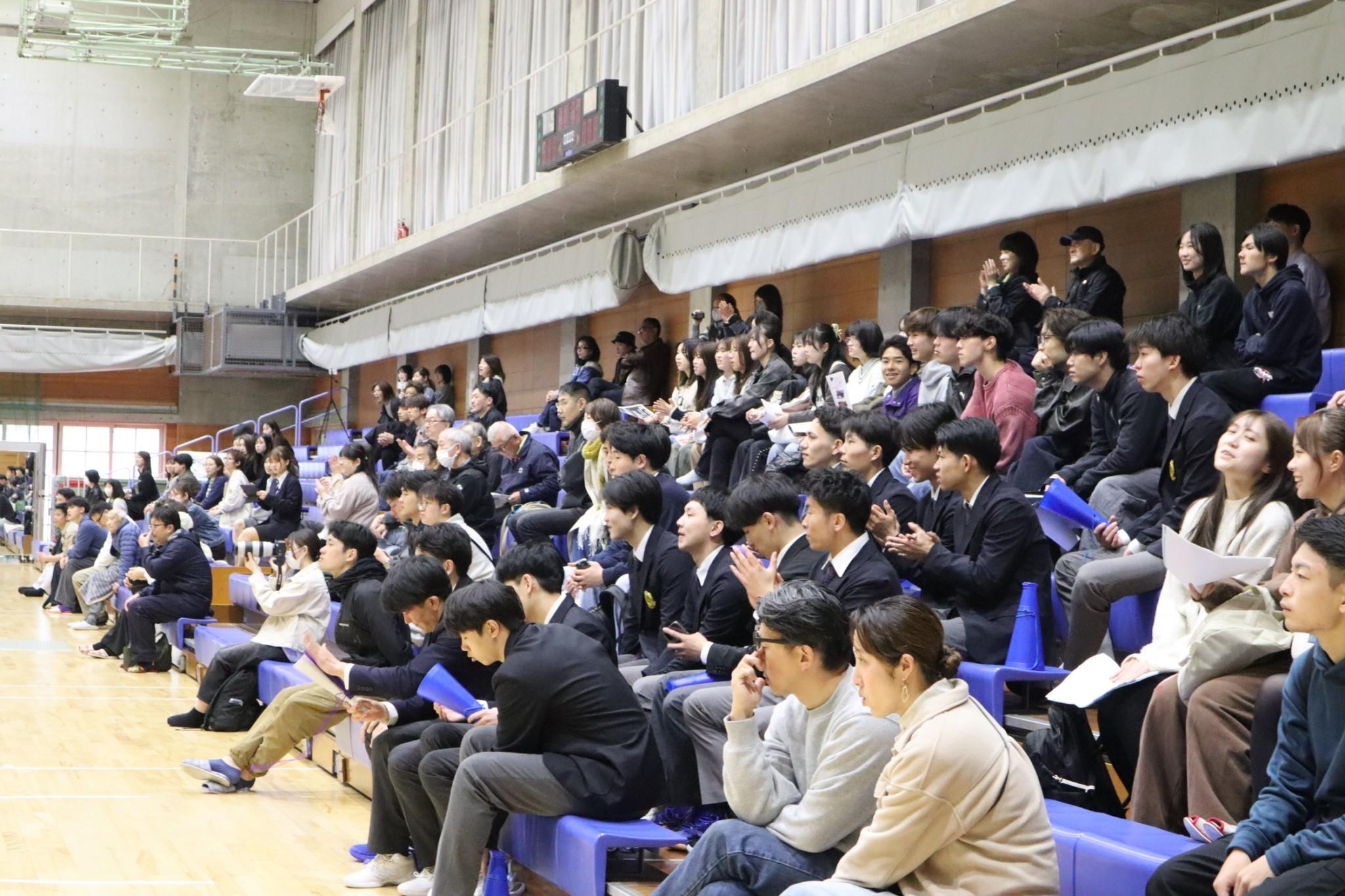 当日は、同日に開催された「立命館大学ウェルカムフェスティバル」と連動して実施され、多くの新入生が来場しました。大学生活のスタートにあたり、課外活動や学生主体の企画に触れる機会となり、スポーツを通じてキャンパスの一体感や熱気を体感できる場となりおよそ300名が試合を観戦しました。