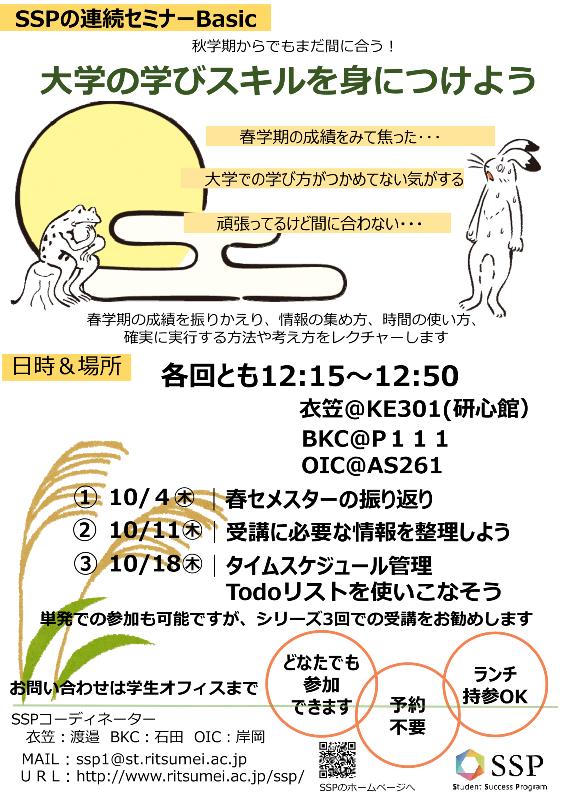 10/18(木)12時15分~12時50分 衣笠 KE301(研心館) BKC P111 OIC AS261