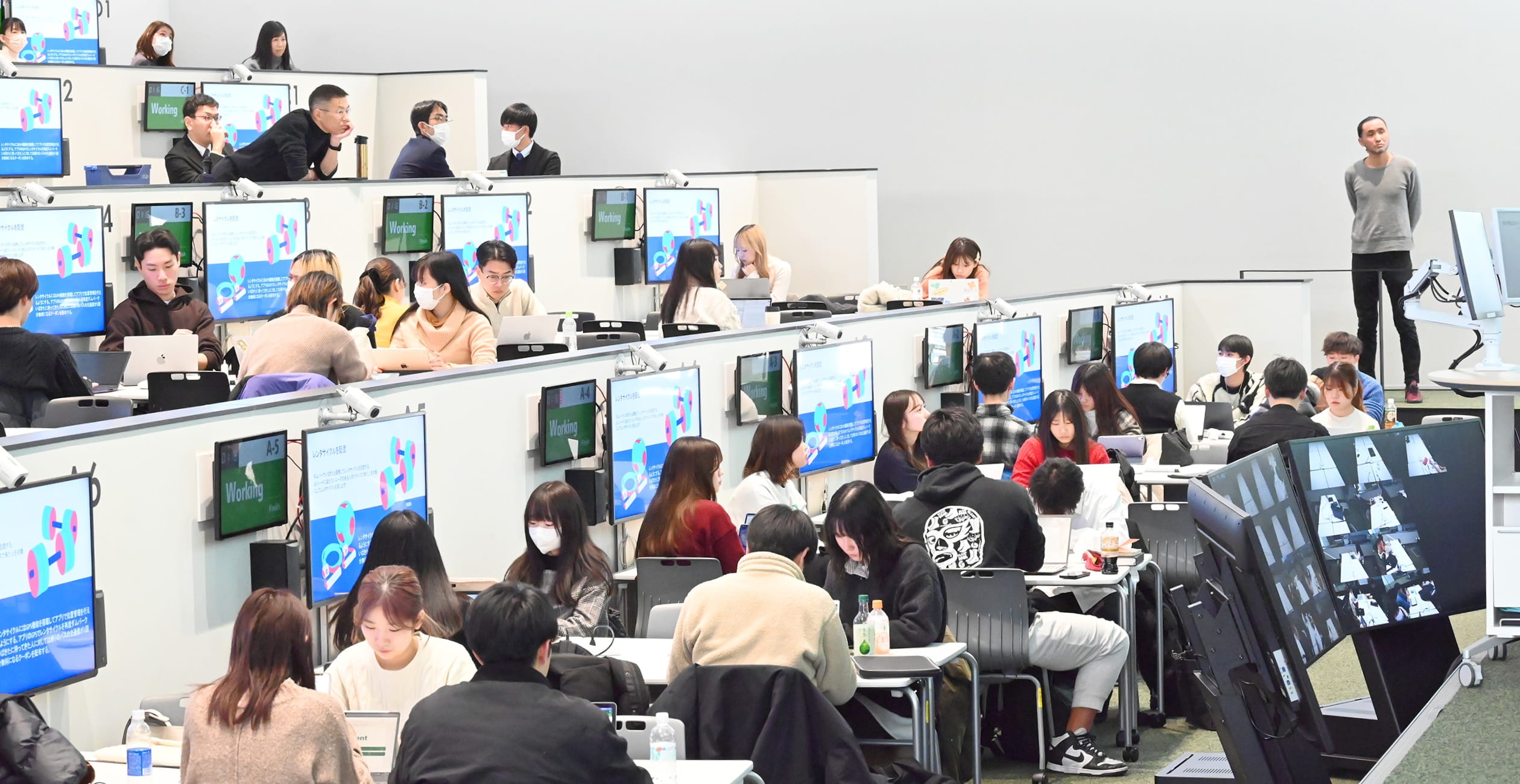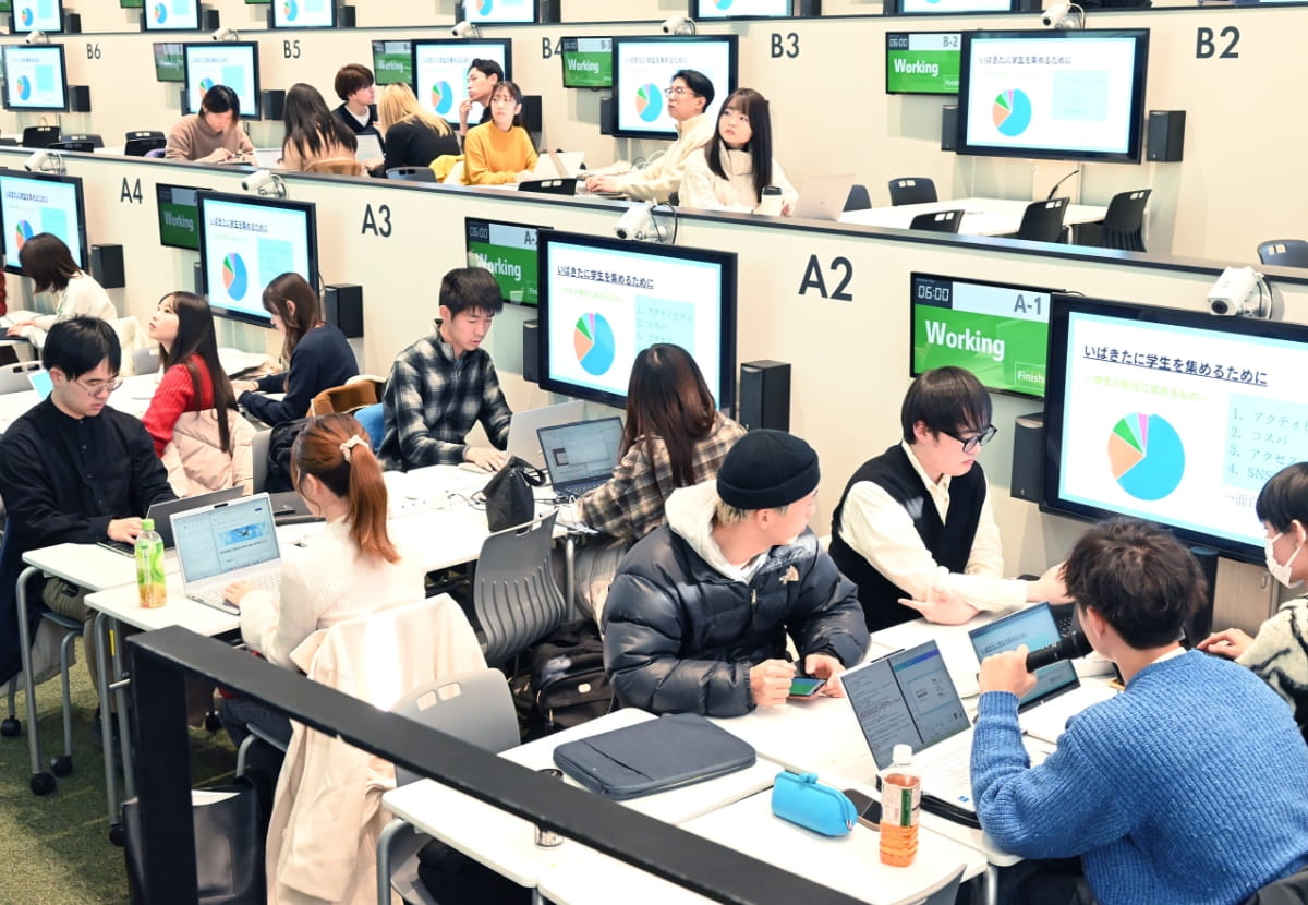 担当教員の1人、経営学部の後藤智教授は言います。「経営学部は大規模な科目が多いため、授業内でグループワークによるプロジェクトを行うのが難しい面がありました。しかし、Learning Infinity Hallなら大人数でのグループワークも可能なので、この挑戦的な試みをぜひやってみたいと思いました」。