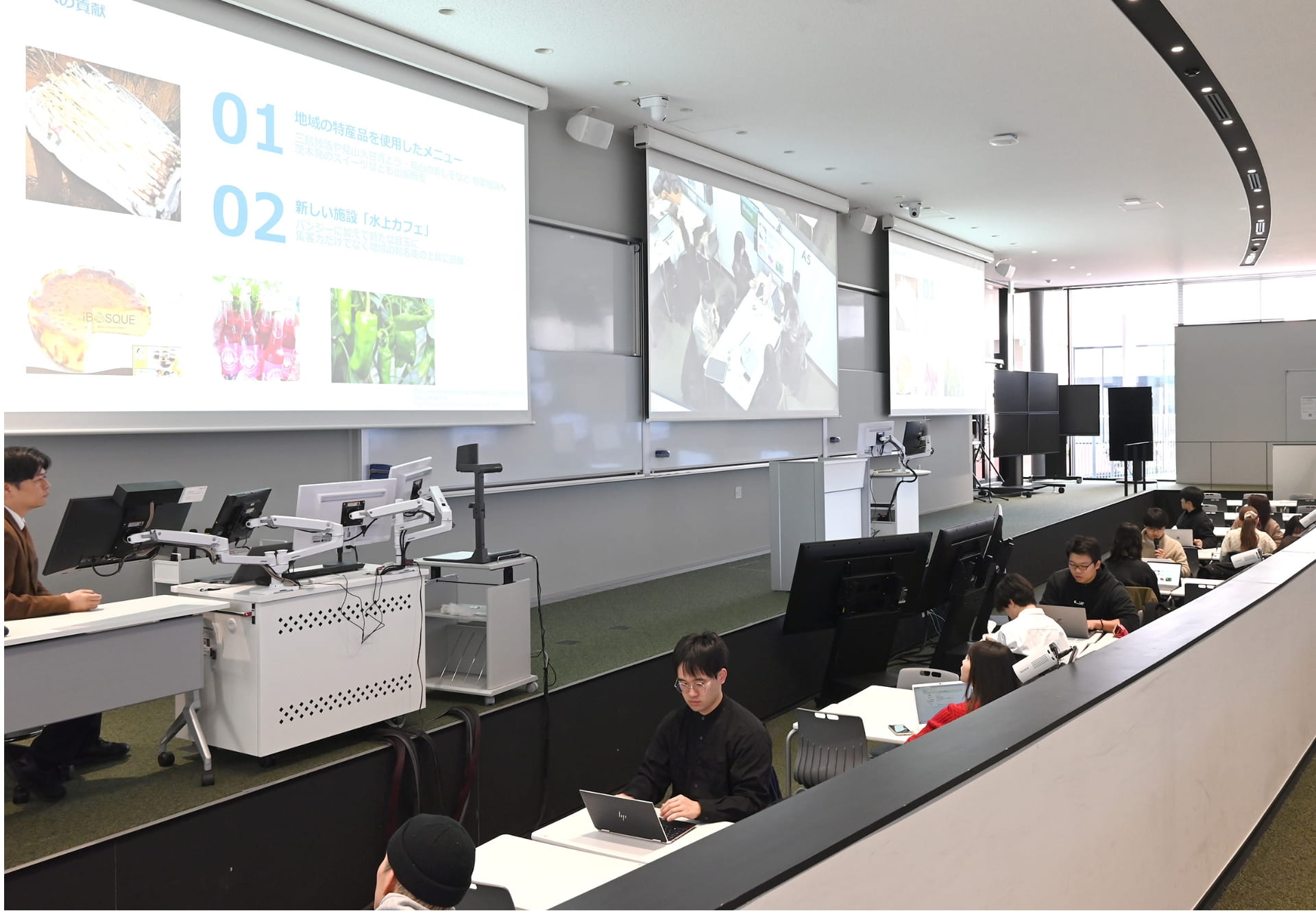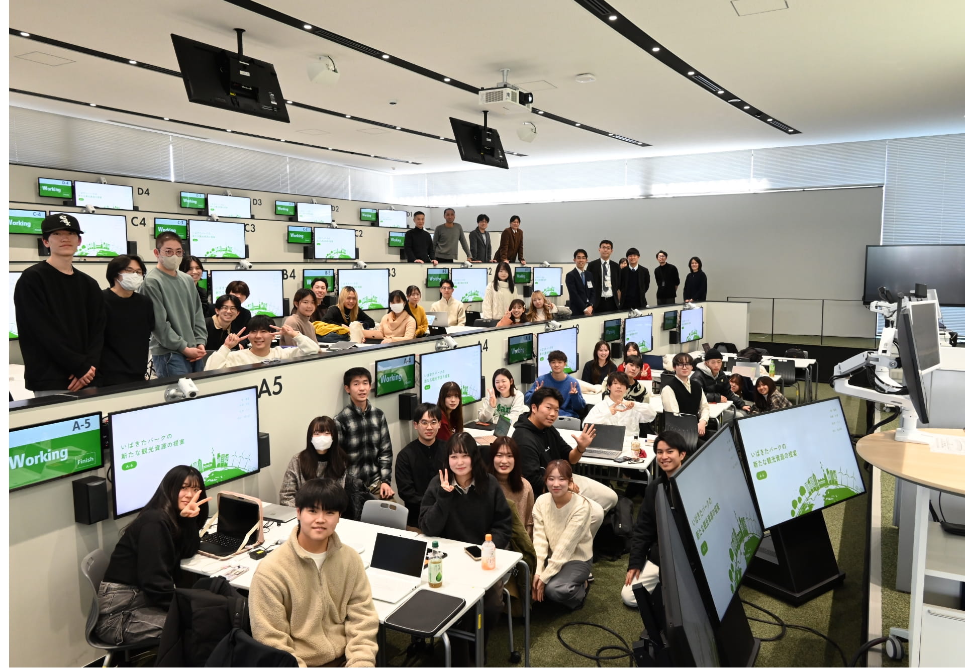担当教員の1人、経営学部の後藤智教授は言います。「経営学部は大規模な科目が多いため、授業内でグループワークによるプロジェクトを行うのが難しい面がありました。しかし、Learning Infinity Hallなら大人数でのグループワークも可能なので、この挑戦的な試みをぜひやってみたいと思いました」。