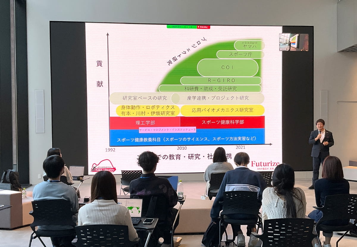 大学にとってこの「教養ゼミナール(47)」は、学園ビジョンR2030に向けての多くの試みが詰め込まれた授業となりました。その中核として研究と教育の拡大的再結合にむけた大きなビジョンを描くためのオリジナルの人材育成プログラムや企業との共創など、TRY FIELDで生み出された学内リソースを活用した取り組みについてご紹介します。