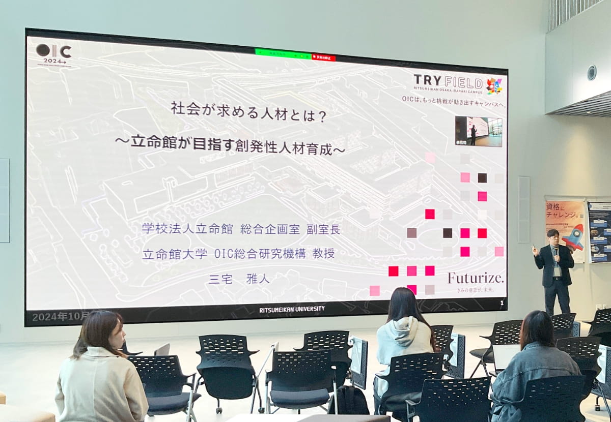 立命館大学社会共創推進本部は、実社会が抱える課題をテーマに、仲間と共にその解決策を考えながら、参加者一人ひとりの可能性を掘り起こし、育んでいく人材育成プログラム「QULTIVA(カルティバ)」を構築し、2024年度春セメスターより始動させています。立命館学園がR2030で掲げる創発性人材の育成を目的とするもので、TRY FIELDで実施されるプロジェクトをはじめ、課外での学びに積極的に取り入れられ、自主的に参加した学生の可能性を育んでいます。