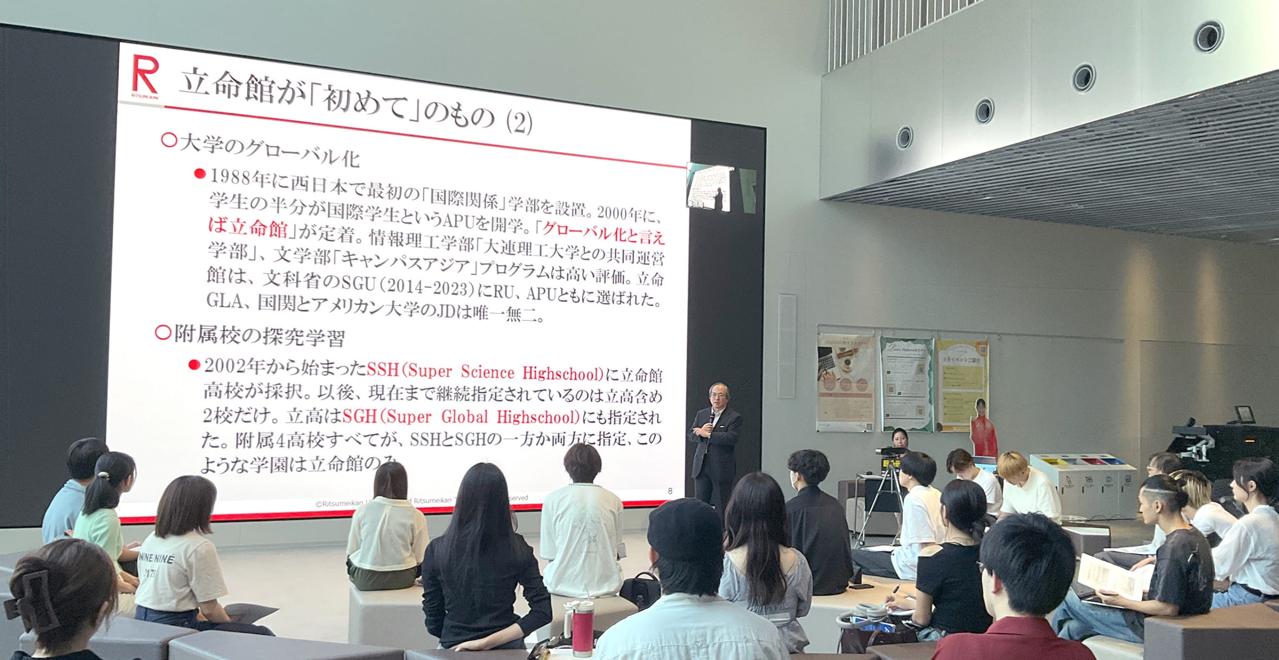 それぞれ分野は異なるのに、先生方のお話から共通して浮かび上がってきたのは「アンコンシャス・バイアス(無意識の思い込み)」というキーワードでした。「自分が考える範囲、ものの見方や捉え方をちょっと超えたところに新しい視点みたいなものがある」と横田教授は話します。立命館を代表する研究者の先生方が、まったく違う研究内容について説明しながら、共通してそのことを話されたことは、強く学生の意識に残ったのではないでしょうか。