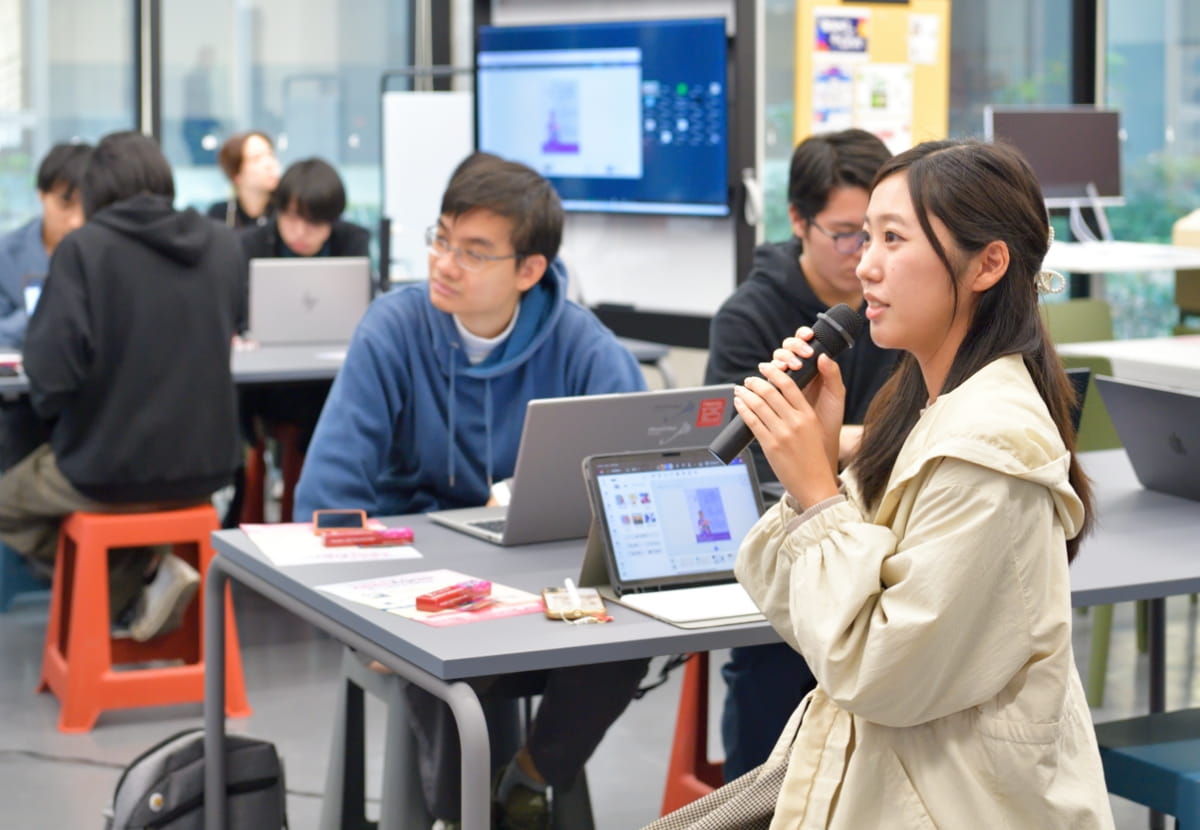 ※学生の視点からアドビ製品の活用と、立命館学園全体のクリエイティブなデジタルリテラシー向上を推進する役割を担います。立命館大学と立命館アジア太平洋大学の学生らが日本で初めてアドビに認定されました。最後は、数人の学生が作成したスライドを発表し、講師のお二人がフィードバックを提供。独自性への評価、より具体的に、数字を盛り込むと説得力が増すこと、見出しとして印象的なキャッチコピーを入れると効果的であること、学生時代に経験したことのエピソードだけでなく、その時どのような課題意識を持ち、その後どのような行動を起こしたかなども盛り込むとよいなど、具体的、実践的なアドバイスが送られていました。
