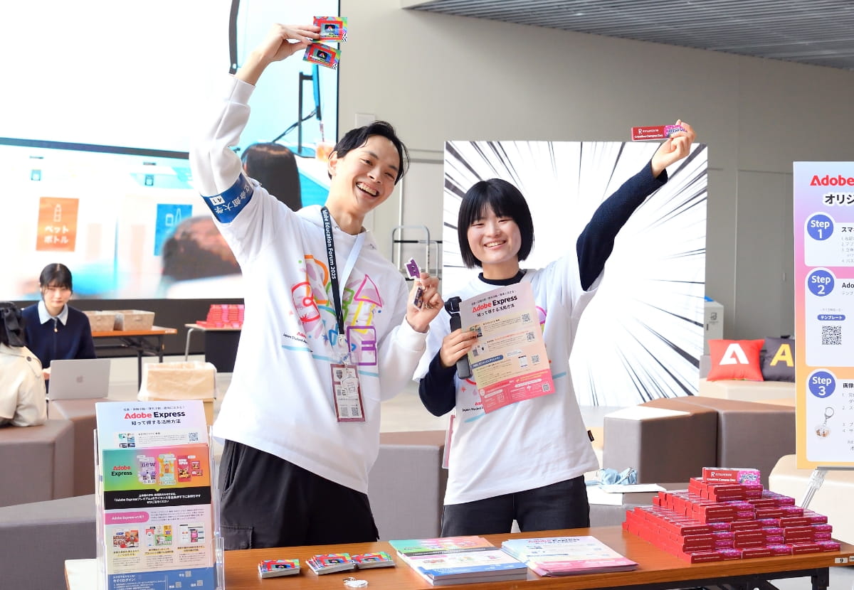 立命館とアドビ株式会社は、2023年に連携・協力協定を締結。2024年4月には、日本初の「Adobe Creative Campus」として、5万人の児童・生徒・学生・教職員に対してクリエイティブツールAdobe Expressを配布し、講演やワークショップの開催などを通して、学生や教職員のクリエイティブデジタルリテラシーを育成してきました。