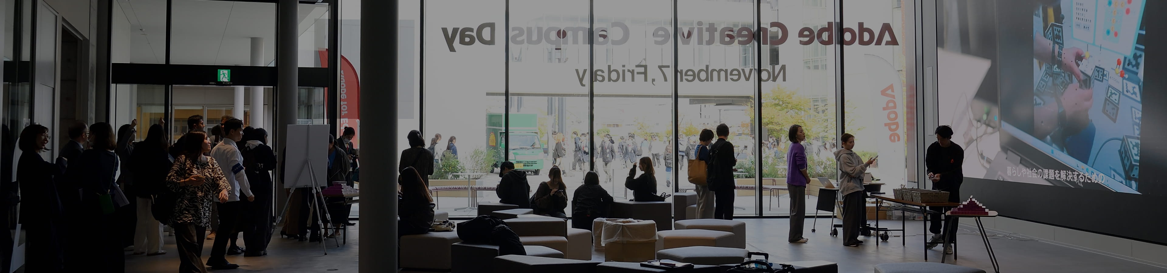 「Adobe Creative Campus Day」は、これまでのようにターゲットを絞った単発の講座ではなく、学生も教職員も含むキャンパス全体で、アドビのクリエイティブツールを自らの活動の中で積極的に活かしていこう!という「お祭り」企画です。アドビ認定の学生リーダーであるAdobe Student Ambassadorも運営に参加してイベントを盛り上げました。
