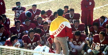 2000年11月11日(土)西宮球技場で全国大会の第二回戦が行われました。対する大産大高校は高校フットボール界でも最高のレベルのチーム。おそらく苦しい場面が多くあることは承知の上。この日の目標は、「どんな苦しい場面でも、全員がしっかりと顔をあげて乗りきろう。ボールに集まって全員で戦おう」でした。