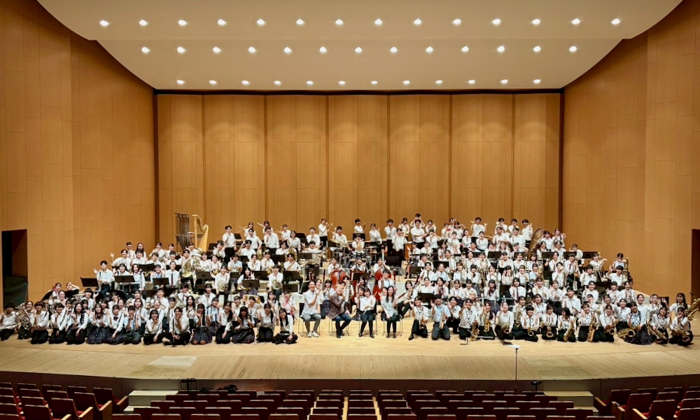 練習の締めくくりには、吹奏楽の名曲「宝島」を合同で演奏し、世代を超えて音楽の楽しさを分かち合うことができました。部員にとって、演奏技術の向上だけでなく、音楽を通じた交流の大切さを実感できる、実り多い一日となりました。