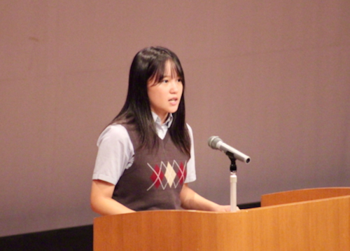 国語の授業で選出された中学2・3年生の各クラス代表12名が登壇し、自分の想いや考えを言葉に込めて、豊かな表現力で主張しました。全校生徒を前に発表することは大きな挑戦であり、強い勇気を必要とします。しかし、出場した生徒たちは緊張を乗り越え、しっかりとした口調と自信に満ちた態度で、自らの意見を堂々と伝えることができました。みなさん、ご苦労様でした。