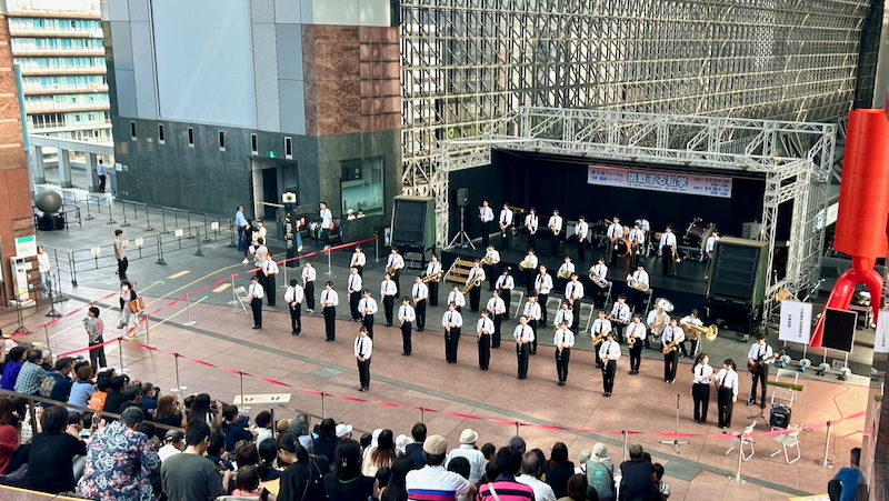 京都駅ビル大階段に響く演奏と舞 吹奏楽部・バトントワーリング部が出演