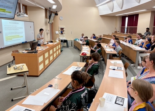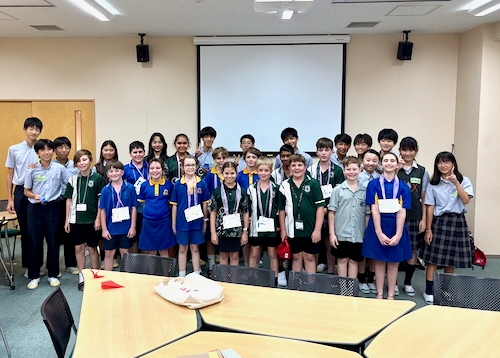10月1日(火)、本校にオーストラリアの小学校3校(Virginia SS、Geebung SS、Hamilton SS)から、15名の小学生が来校しました。来校した児童たちは、本校の中学生とさまざまな活動を通して交流を深めました。来校した学校のひとつ Virginia SS は、今年の夏に本校中学3年生が研修旅行で滞在した学校です。今回の訪問では、当時Virginiaに滞在していた生徒たちが中心となって校舎案内を行い、再会を喜ぶ姿が見られました。研修旅行での経験を活かしながら、自然体で交流の架け橋となる姿が印象的でした。