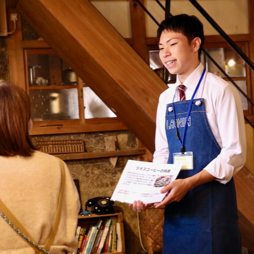2016年にラオスの学校を支援することを目的に立命館宇治中高の生徒によって立ち上げられた自主団体。現在は中高あわせて約60名が活動し、ラオスからフェアトレードで輸入したコーヒー豆を使ったオリジナルブランドの販売を通じて、現地の教育支援に継続的に取り組んでいます。