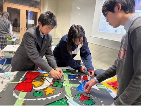 制作の途中では、予定より大幅に時間がかかるなどの苦労もありましたが、文化委員会のメンバーは最後まで協力して前向きに取り組んでくれました。ステンドグラスは、一人の力だけでは完成せず、みんなが考えたデザインや色が合わさって初めて美しくなる作品です。