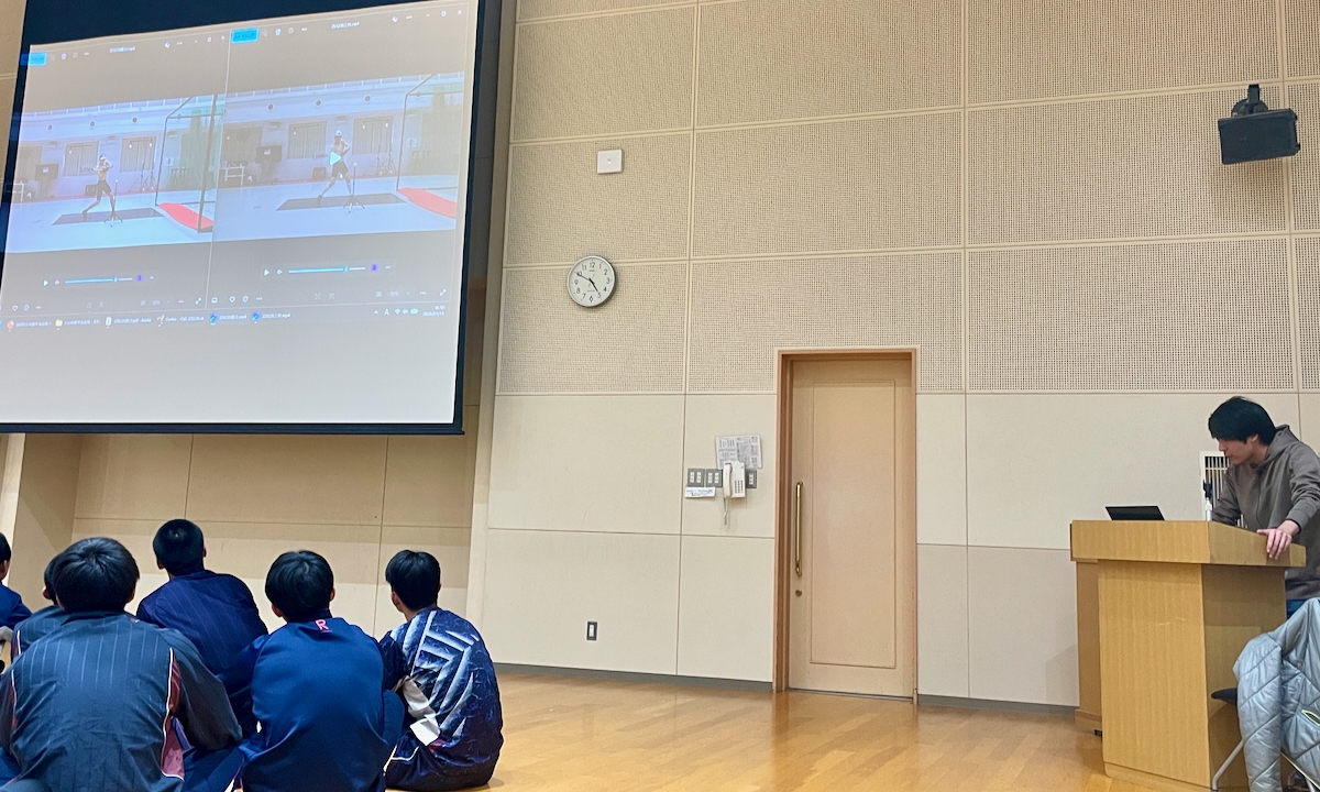今年度は12月に測定を実施し、そのデータをもとにした分析結果を、1月15日(木)に野球部全員へフィードバックしていただきました。スイングスピードを向上させ、よりボールを遠くに飛ばすためにはどのようなポイントが重要なのか、科学的な視点から具体的に説明いただき、生徒たちは理解を深めながら学びを進めることができました。