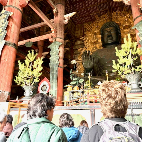 続いて訪れた東大寺では、高さ約15メートルの大仏様を拝観。荘厳な空間の中で、日本の歴史や文化に触れながら、心静まるひとときを過ごしました。互いに感想を共有し合う姿からは、文化を越えた学びの広がりが感じられました。