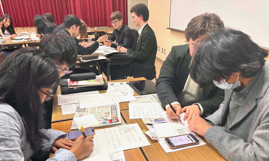 さらに、日本語の授業では、先日訪問した奈良について理解を深めるとともに、日本語の文字や表現について留学生・日本人高校生と共に学び合いました。英語の名前を漢字にして色紙に書き、互いにプレゼントする交流も行われ、教室には笑顔があふれる温かな時間が広がりました。