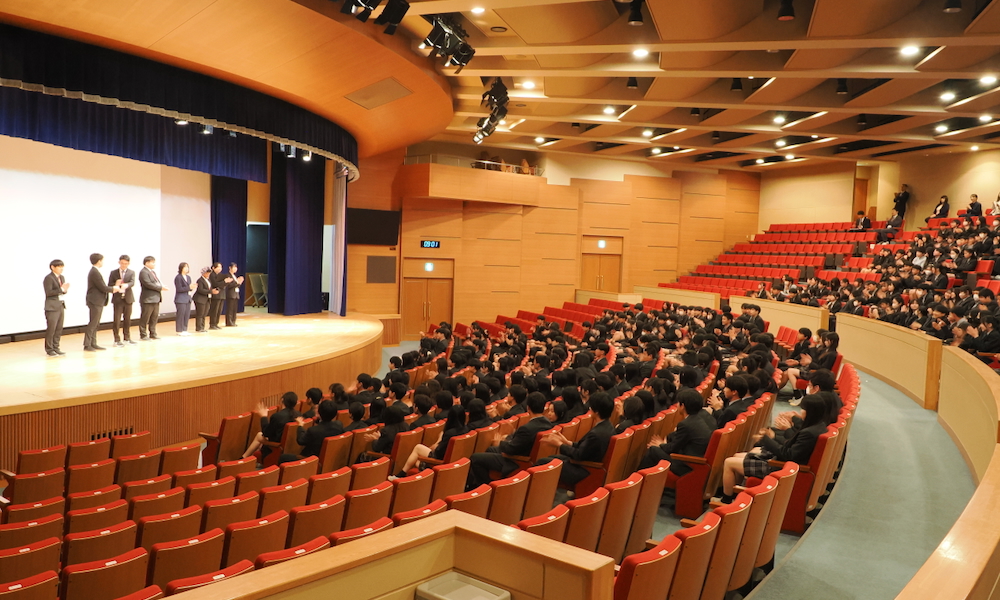 また、4月赴任の新しい先生の紹介があり、生徒から歓迎の大きな拍手が送られました。