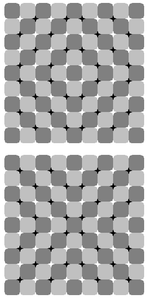 This checkered background consists of squares but appears to be distorted. In addition, this figure shows a great amount of anomalous motion illusion.