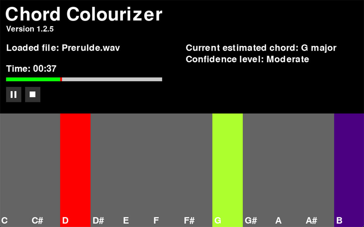 Exploring visualization of music signals based on colour theory, and generative music based on colour input.