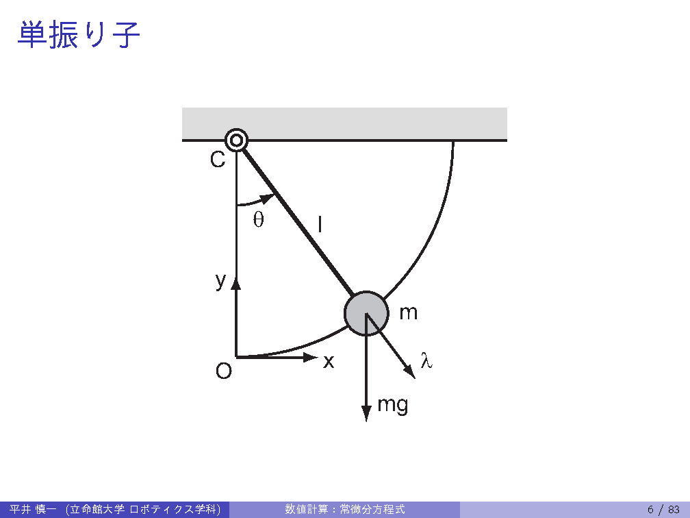 | 第4週 | 4/27 | 常微分方程式 ルンゲ・クッタ・フェールベルグ法,制約,制約安定化法 |