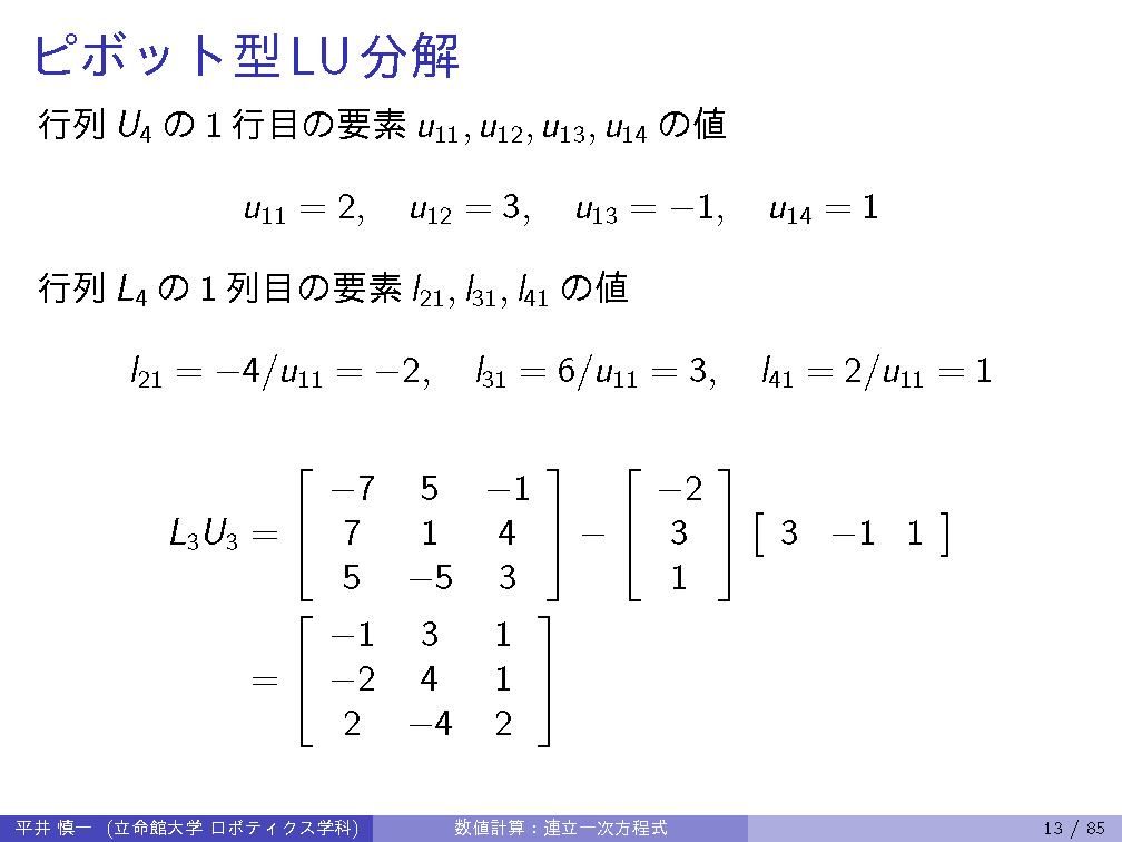 | 第5週 | 5/11 | 連立一次方程式 LU分解,ピボット型LU分解 |