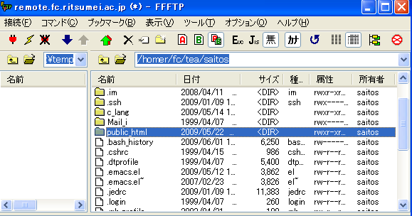 なお、FFFTPの使用については、『RAINBOW GUIDE』のp.68に詳細な説明あり。