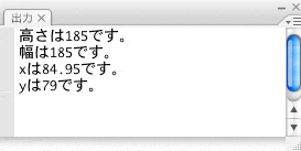 *出力結果は、Flashの出力パネルに表示されるので、swfファイルを単体で実行した場合は、出力結果は得られない。