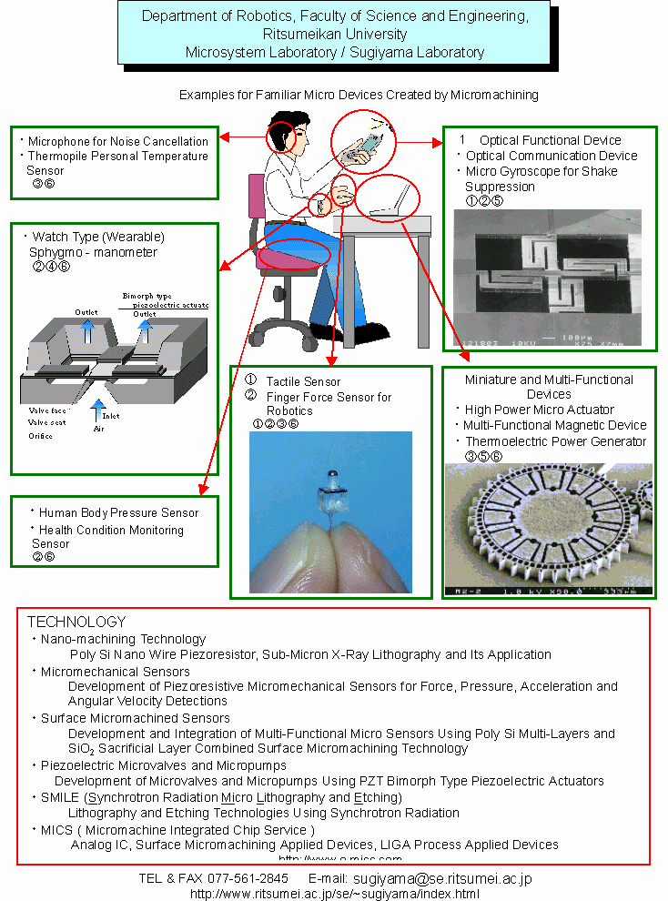 ŸWe are aiming at the realization of MEMS (Micro Electro Mechanical Systems) which unifies sensor actuator and the processing circuit, mainly developing researches for