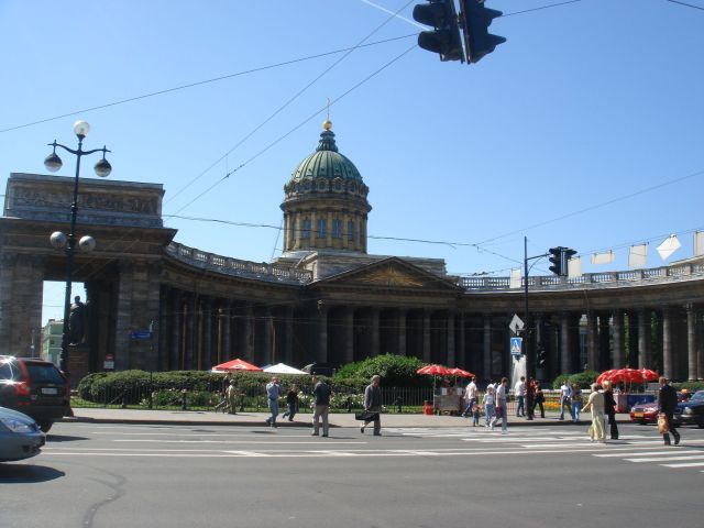 | カザン聖堂全景 通りに並ぶパラソルは、ジュースとアイスキャンディー屋さん |